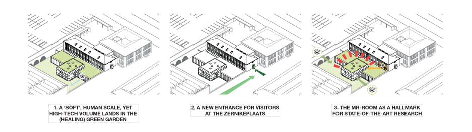 As a Radboudumc building, M836 is equipped to support patient care and will serve as a dedicated clinical research site, seamlessly connected to the existing Trigon and CDL facilities. The design also ensures easy access for external patients and research participants from the wider DYNAMIC Consortium, fostering collaboration and broad scientific impact.